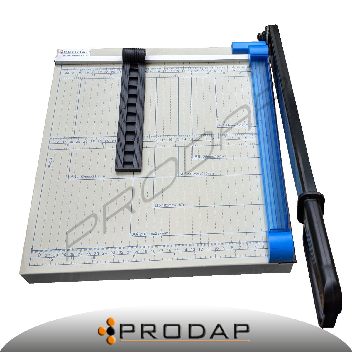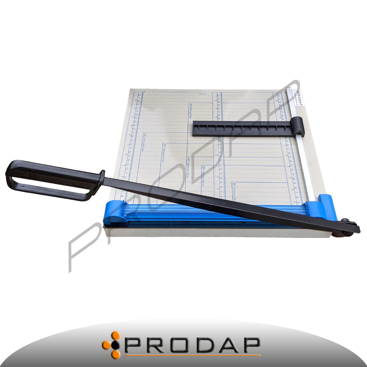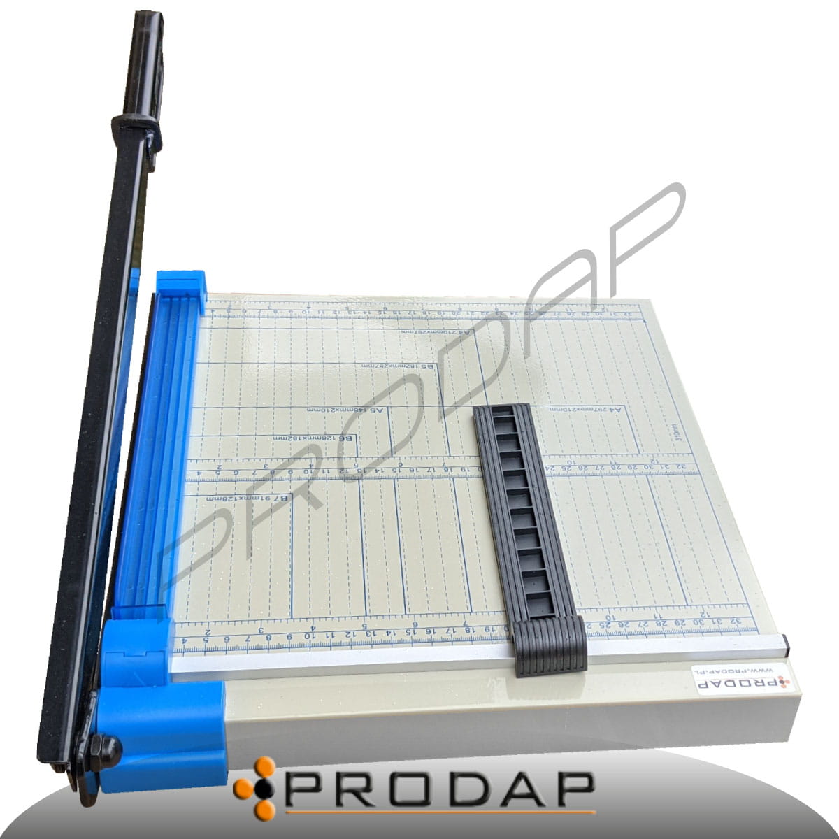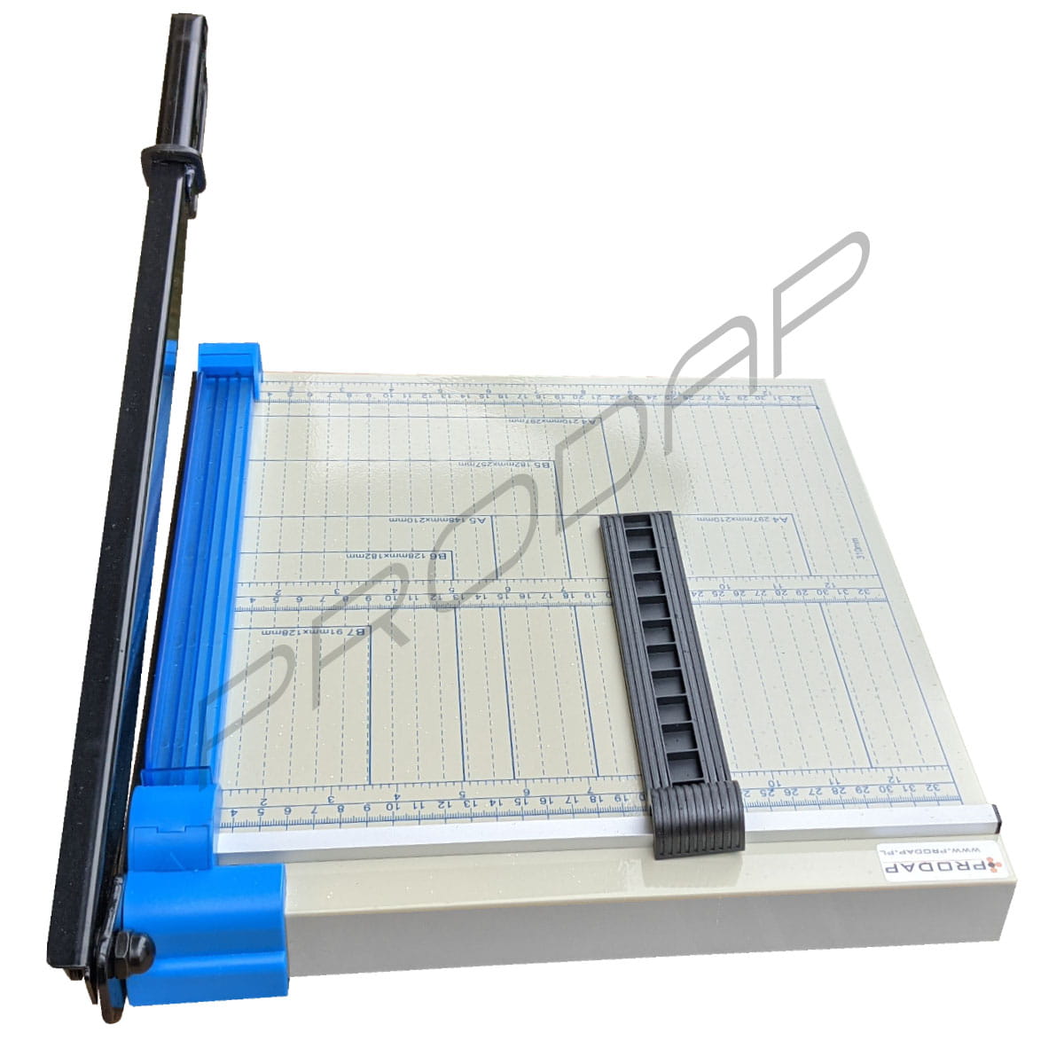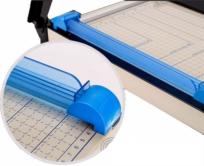 Bardzo wygodne i precyzyjne urządzenie do cięcia ulotek, zdjęć, itp. Dzięki gumowym nóżkom gilotyna nie ślizga się po blacie. Gilotyna posiada ruchomy ogranicznik formatu co ułatwia przygotowanie dokumentów do cięcia. Na końcu noża znajduje się wygodna rączka Urządzenie posiada wygodną siatkę mierniczą w centymetrach z wyróżnionymi standardowymi rozmiarami B7, B6, A5, B5, A4.