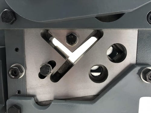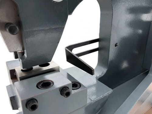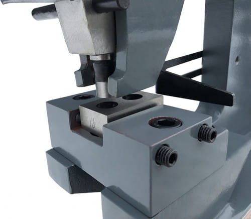Dodatkowo maszyna posiada funkcję wykrawania otworów w blasze do 5 mm. Średnica wykrawanego otworu to 16 mm. Istnieje możliwość zamontowania innych matryc od 3 mm do 22 mm.