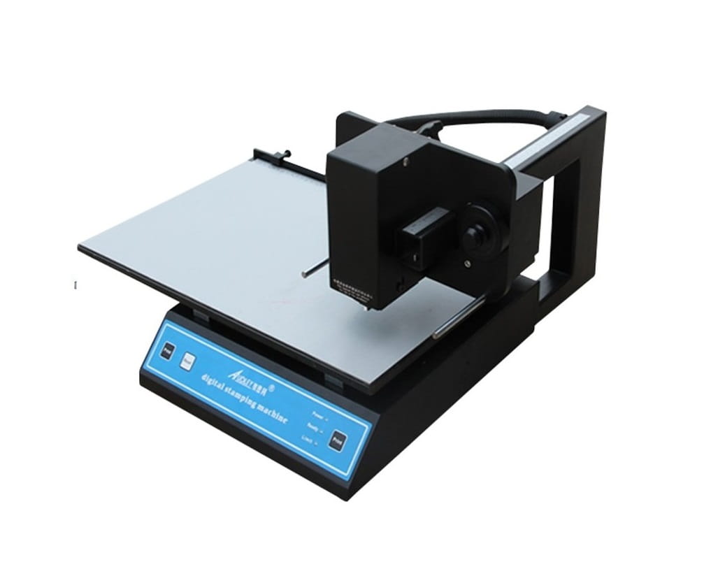 Cyfrowa drukarka ze sterownikami do Windows do drukowania z foliami (złocenia) bez użycia stempli. Materiały na jakich można nanosić nadruki: skóra, PVC, PU, PET, winyl, karton, tkanina, folia, guma. W urządzeniu stosowane są typowe folie hot stampingowe. Urządzenie drukuje za pomocą głowicy termotransferowej prosto z pliku. Proces druku jest bardzo prosty – tworzymy projekt w pliku graficznym lub nawet pliku tekstowym Word. Złociarka instalowana jest jako drukarka, więc drukujemy bezpośrednio z pliku.
